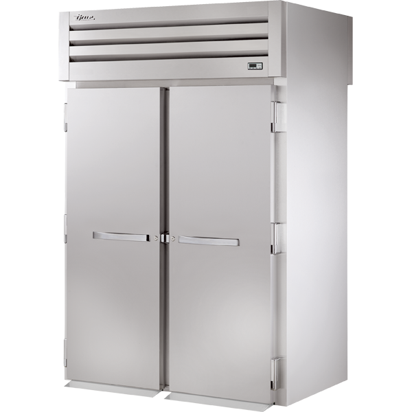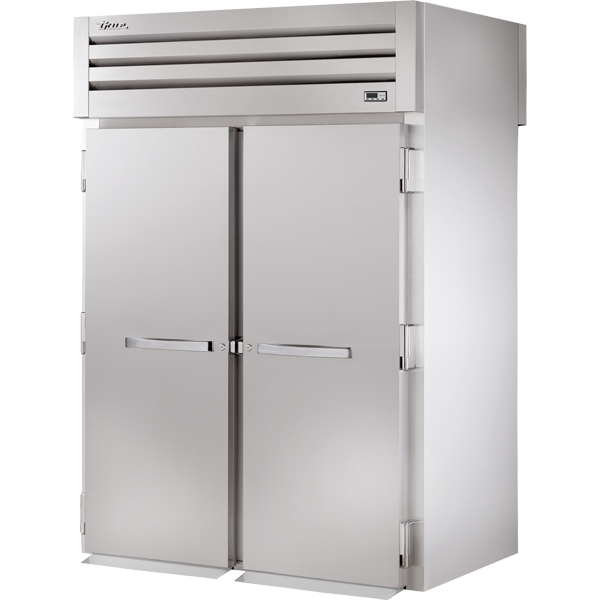Oversized, factory balanced, refrigeration system holds 33°F to 38°F (.5°C to 3.3°C) for the best in food preservation. Four (4) heavy gauge stainless steel ramps (one per door). Designed to accept roll-in racks (inboard castors) with maximum dimensions of 27"L x 29"D x 66"H (686 mm x 737 mm x 1677 mm)(supplied by others). Three (3) lifetime guaranteed, cam-lift hinges. Full 180° open capability with a stay open feature at 120°. Entire cabinet structure and solid door are foamed-in-place using Ecomate. A high density, polyurethane insulation that has zero ozone depletion potential (ODP) and zero global warming potential (GWP).