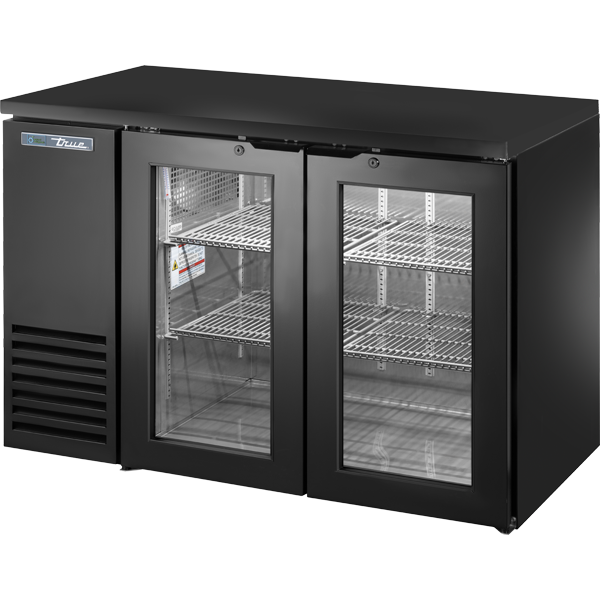 R290 Hydrocarbon refrigerant. Exterior: Black, powder coated cold-rolled steel with stainless steel countertop. Interior: Stainless steel floor with heavy gauge galvanized steel walls. Each Doors fitted with black flat top door handles. True’s self-cleaning RCU technology eliminates the need to clean the condenser coil, reduces energy consumption and helps maintain the coldest temperatures and freshest product. LED interior lighting. NSF/ANSI Standard 7 compliant for the storage and/or display of packaged or bottled product. Recommended 1″ clearance side and back