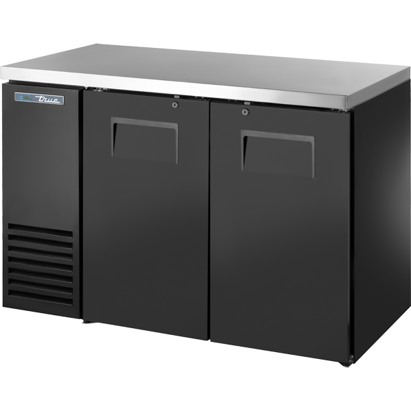 R290 Hydrocarbon refrigerant. Exterior: Black, powder coated cold-rolled steel with stainless steel countertop. Interior: Stainless steel floor with heavy gauge galvanized steel walls. Each Door fitted with 12″ (305mm) long recessed handle that is foamed-in-place with a sheet metal interlock to ensure permanent attachment. True’s self-cleaning RCU technology eliminates the need to clean the condenser coil, reduces energy consumption and helps maintain the coldest temperatures and freshest product. LED interior lighting. NSF/ANSI Standard 7 compliant for the storage and/or display of packaged or bottled product. Recommended 1″ clearance side and back