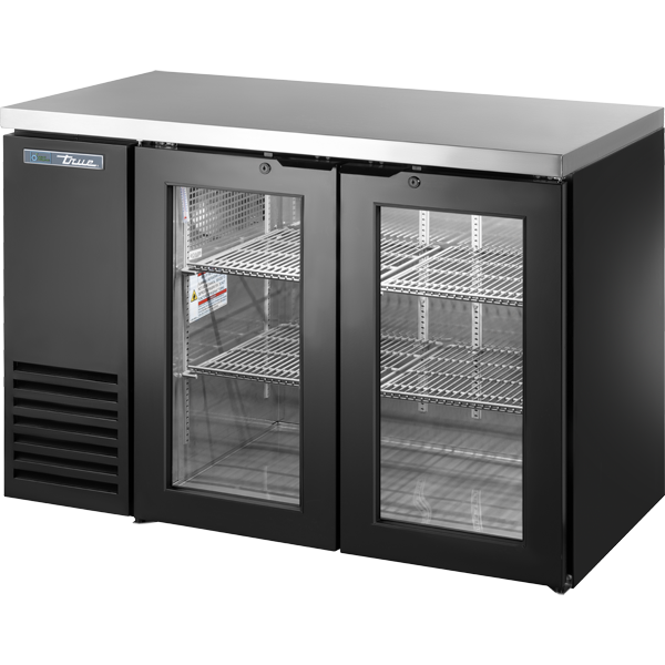 R290 Hydrocarbon refrigerant. Exterior: Black, powder coated cold-rolled steel with stainless steel countertop. Interior: Stainless steel floor with heavy gauge galvanized steel walls. Each Doors fitted with black flat top door handles. True’s self-cleaning RCU technology eliminates the need to clean the condenser coil, reduces energy consumption and helps maintain the coldest temperatures and freshest product. LED interior lighting. NSF/ANSI Standard 7 compliant for the storage and/or display of packaged or bottled product. Recommended 1″ clearance side and back