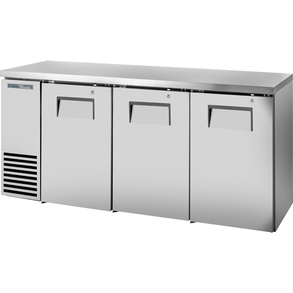 R290 Hydrocarbon refrigerant. Exterior: Stainless exterior with stainless steel countertop. Interior: Stainless steel floor with heavy gauge galvanized steel walls. Each Door fitted with 12″ (305mm) long recessed handle that is foamed-in-place with a sheet metal interlock to ensure permanent attachment. True’s self-cleaning RCU technology eliminates the need to clean the condenser coil, reduces energy consumption and helps maintain the coldest temperatures and freshest product. LED interior lighting. NSF/ANSI Standard 7 compliant for the storage and/or display of packaged or bottled product. Recommended 1″ clearance side and back