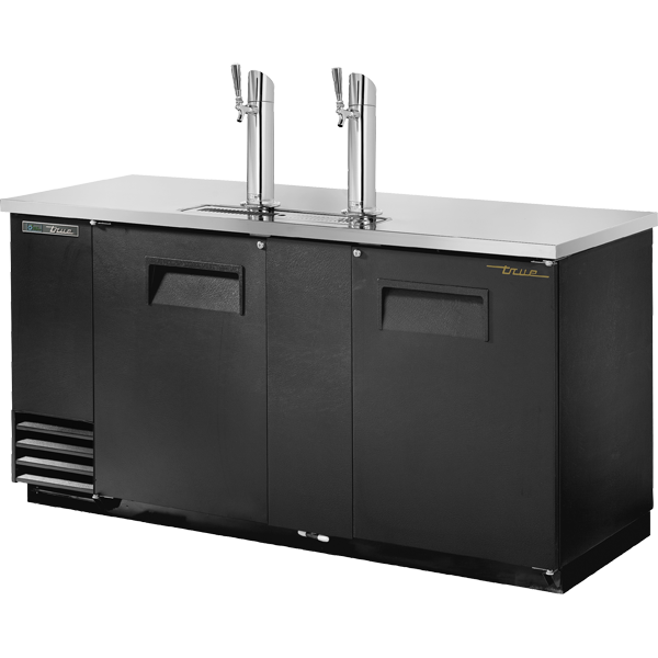 True’s direct draw beer dispensers are designed with enduring quality and value. Our commitment to using the highest quality materials and oversized refrigeration assures colder product temperatures and years of trouble free service. High capacity, factory balanced refrigeration system that maintains cabinet temperatures of 33°F to 38°F (.5°C to 3.3°C). Exterior – Black, powder coated cold-rolled steel with stainless steel countertop. Interior – Stainless steel floor with 1/2" (13 mm) reinforced lip and heavy gauge galvanized steel walls. NSF/ANSI Standard 7 compliant for packaged or bottled product. Two (2) 3" (77 mm) diameter stainless steel insulated beer columns. Cold air is directed into beer columns to reduce foaming and maximize draft beer profits.