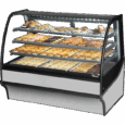 True’s "dry" display case combines efficient, high volume merchandising with an elegant curved glass front for sophisticated presentation of high end desserts and pastries. Cabinet is NSF/ANSI Standard 2 certified to hold open food product. Two (2) rear sliding glass doors for back access. Exterior – stainless steel rounded front and back, stainless steel side and front panels. Curved glass front and side glass panels. Stainless steel interior for those who appreciate the value of stainless. Three (3) tiered levels of adjustable wire cantilever shelves that match cabinet interior color. Chrome plated wire shelves standard on stainless units. Front glass swings Up for easy cleaning access.