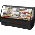- True’s refrigerated display case combines efficient, high volume merchandising and exceptional refrigeration with an elegant curved glass front for sophisticated presentation of high end deli, desserts and pastries.