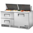 True’s food prep units are designed with enduring quality that protects your long term investment. Factory engineered, self-contained, capillary tube system using environmentally friendly R290 hydro carbon refrigerant that has zero (0) ozone depletion potential (ODP), & three (3) global warming potential (GWP). All stainless steel front, top and ends. Corrosion resistant GalFan coated steel back. Door fitted with 12" (305 mm) long recessed handle that is foamed-in-place with a sheet metal interlock to ensure permanent attachment. Stainless steel, patented, foam insulated lid and hood keep pan temperatures colder, lock in freshness and minimize condensation. Removable for easy cleaning. Interior – attractive, clear coated aluminum liner. Stainless steel floor with coved corners. 8" (204 mm) deep, 1/2" (13 mm) thick, full length removable cutting board included. Sanitary, high density white polyethylene provides tough preparation surface. Each drawer accommodates two (2) full size 12"L x 20”W x 6"D (305 mm x 508 mm x 153 mm) food pan (sold separately). Drawer will support varying size pan configurations with available pan divider bars (drawer pans sold separately). Heavy-duty stainless steel drawer slides and rollers. Foamed-in-place using a high density, polyurethane insulation that has zero ozone depletion potential (ODP) and zero global warming potential (GWP).