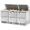 True’s food prep units are designed with enduring quality that protects your long term investment. Factory engineered, self-contained, capillary tube system using environmentally friendly R290 hydro carbon refrigerant that has zero (0) ozone depletion potential (ODP), & 0.02 global warming potential (GWP). All stainless steel front, top and ends. Corrosion resistant GalFan coated steel back. Stainless steel, patented, foam insulated lid and hood keep pan temperatures colder, lock in freshness and minimize condensation. Removable for easy cleaning. Interior – stainless steel liner. Stainless steel floor with coved corners. 8″ (204 mm) deep, 1/2″ (13 mm) thick, full length removable cutting board included. Sanitary, high density white polyethylene provides tough preparation surface. Each drawer accommodates one (1) full size 12"L x 20”W x 6″D (305 mm x 508 mm x 153 mm) food pan & three (3) 1/9 size or six (6) 1/6 size & three (3) 1/9 size pans per drawer (sold separately). Drawer will support varying size pan configurations with available pan divider bars (drawer pans sold separately). Heavy-duty stainless steel drawer slides and rollers. Foamed-in-place using a high density, polyurethane insulation that has zero ozone depletion potential (ODP) and zero global warming potential (GWP).