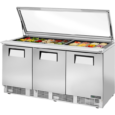 True’s food prep units are designed with enduring quality that protects your long term investment. Factory engineered, self-contained, capillary tube system using environmentally friendly R290 hydro carbon refrigerant that has zero (0) ozone depletion potential (ODP), & three (3) global warming potential (GWP). All stainless steel front, top and ends. Corrosion resistant GalFan coated steel back. Heavy-duty flat glass lid keeps pan temperatures colder and locks in freshness while enabling maximum product visibility. Interior – attractive, clear coated aluminum liner. Stainless steel floor with coved corners. 8" (204 mm) deep, 1/2″ (13 mm) thick, full length removable cutting board included. Sanitary, high density white polyethylene provides tough preparation surface. Doors fitted with 12″ (305 mm) long recessed handle that is foamed-in-place with a sheet metal interlock to ensure permanent attachment. Foamed-in-place using a high density, polyurethane insulation that has zero ozone depletion potential (ODP) and zero global warming potential (GWP).