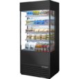 True’s open air merchandisers are designed with enduring quality that protects your long term investment. Large, open front allows easy access to display levels and places maximum attention on merchandising. Factory engineered, self-contained refrigeration system using environmentally friendly R290 hydrocarbon refrigerant that has zero (0) ozone depletion potential (ODP), & three (3) global warming potential (GWP). High capacity, factory balanced refrigeration system that maintains cabinet temperatures of 33°F to 40°F (0.5°C to 4.4°C) for the best in food preservation. Patented reversing condenser fan motors. Fan motors reverse during defrost off cycles to help keep condenser coil free from dirt, dust and debris. Keeping coils clean optimizes the unit’s performance providing colder holding temperatures and increased energy efficiency. Regularly scheduled thorough cleaning of coils still recommended. Exterior – non-peel or chip black powder coated cold rolled steel; durable and permanent. Interior – attractive, white aluminum liner. Stainless steel interior floor and deck pans. Four (4) adjustable, solid white powder coated cantilever shelves. Each shelf is equipped with an LED light strip to provide 5 levels of even lighting throughout the cabinet. LED interior cabinet lighting and under shelf high output LED interior lighting provides more even lighting throughout the cabinet and illuminates product on each shelf. Glass lower front and side panel. Durable and break resistant maximizes product visibility.