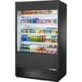 True’s open air merchandisers are designed with enduring quality that protects your long term investment. Large, open front allows easy access to display levels and places maximum attention on merchandising. Factory engineered, self-contained refrigeration system using environmentally friendly R290 hydrocarbon refrigerant that has zero (0) ozone depletion potential (ODP), & three (3) global warming potential (GWP). High capacity, factory balanced refrigeration system that maintains cabinet temperatures of 33°F to 40°F (0.5°C to 4.4°C) for the best in food preservation. Patented reversing condenser fan motors. Fan motors reverse to help keep condenser coil free from dirt, dust and debris. Keeping coils clean optimizes the units performance providing colder holding temperatures and increased energy efficiency. Regularly scheduled thorough cleaning of coils still recommended. Exterior – non-peel or chip black powder coated cold rolled steel; durable and permanent. Interior – attractive, NSF approved, white aluminum liner. Stainless steel interior floor and deck pans. Four (4) adjustable, solid white powder coated cantilever shelves. Each shelf is equipped with an LED light strip to provide 5 levels of even lighting throughout the cabinet. LED interior cabinet lighting and under shelf high output LED interior lighting provides more even lighting throughout the cabinet and illuminates product on each shelf. Glass lower front panel. Durable and break resistant maximizes product visibility.