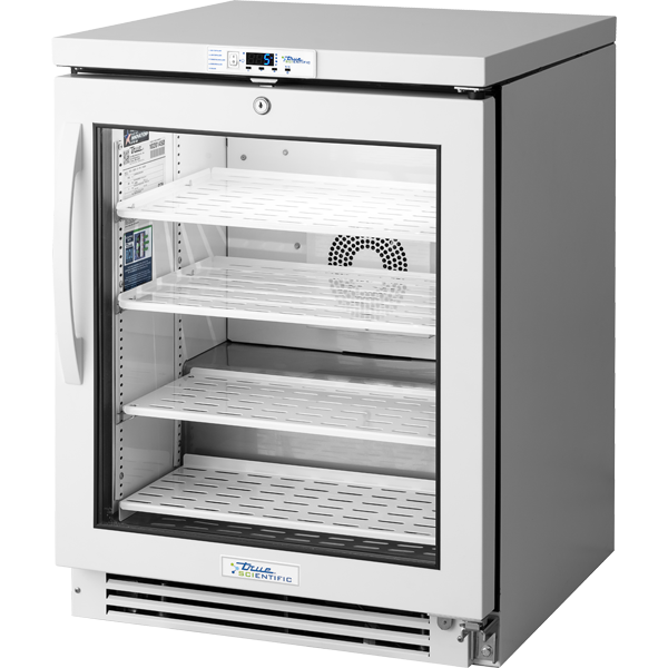True Scientific series utilizes the most advanced technologies designed specifically for pharmacy, laboratory, and clinical applications. Energy efficient refrigeration system with innovative airfow technology specifically designed to maintain cabinet temperatures between 2°C – 10°C (36°F – 50°F). Self-Cleaning condenser technology eliminates the need for cleaning the condensing coil, reduces energy consumption, and helps maintain the tightest temperatures. Energy-efficient and environmentally friendly R290 hydrocarbon refrigerant. Temperature is measured in a glycol-filled bottle which is displayed on the control to simulate actual product temperature. In the event of a high/low-temperature alarm, door opening, temperature sensor failure or power failure, an alarm will be activated, helping to prevent product loss. Built-in antimicrobial properties to protect the handle. Control has a battery back up feature and is locked at the factory to prevent inadvertent changes to the settings.