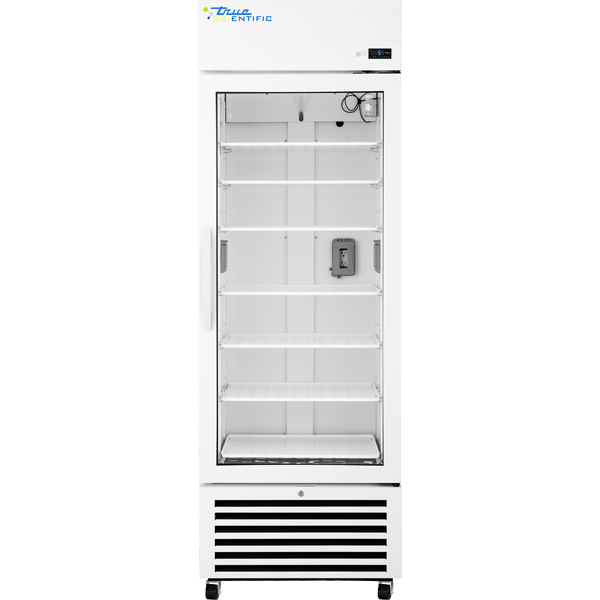 True Scientific series utilizes the most advanced technologies designed specifically for pharmacy, laboratory, and clinical applications. Energy efficient refrigeration system with innovative airfow technology specifically designed to maintain cabinet temperatures between 2°C – 10°C (36°F – 50°F). Self-Cleaning condenser technology eliminates the need for cleaning the condensing coil, reduces energy consumption, and helps maintain the tightest temperatures. Energy-efficient and environmentally friendly R290 hydrocarbon refrigerant. Temperature is measured in a glycol-filled bottle which is displayed on the control to simulate actual product temperature. In the event of a high/low-temperature alarm, door opening, temperature sensor failure or power failure, an alarm will be activated, helping to prevent product loss. Built-in antimicrobial properties to protect the handle. Control has a battery back up feature and is locked at the factory to prevent inadvertent changes to the settings.