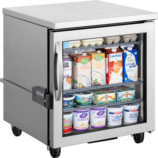 True’s undercounter units are designed with enduring quality that protects your long term investment. Designed using the highest quality materials and components to provide the user with colder product temperatures, lower utility costs, exceptional food safety and the best value in today’s food service marketplace. Factory engineered, self-contained, capillary tube system using environmentally friendly R290 hydrocarbon refrigerant that has zero (0) ozone depletion potential (ODP), & 0.02 global warming potential (GWP). Oversized, environmentally friendly forced-air refrigeration system holds 33°F to 38°F (.5°C to 3.3°C). All stainless steel front, top and ends. Corrosion resistant GalFan coated steel back. Interior – attractive, clear coated aluminum liner with stainless steel floor. Energy efficient, “Low-E”, double pane thermal insulated glass door. Heavy duty PVC coated wire shelves. Foamed-in-place using a high density, polyurethane insulation that has zero ozone depletion potential (ODP) and zero global warming potential (GWP).