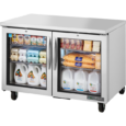 True’s undercounter units are designed with enduring quality that protects your long term investment. Designed using the highest quality materials and components to provide the user with colder product temperatures, lower utility costs, exceptional food safety and the best value in today’s food service marketplace. Factory engineered, self-contained, capillary tube system using environmentally friendly R290 hydrocarbon refrigerant that has zero (0) ozone depletion potential (ODP), & 0.02 global warming potential (GWP). High capacity, factory balanced refrigeration system that maintains cabinet temperatures of 33°F to 38°F (.5°C to 3.3°C) for the best in food preservation. All stainless steel front, top and ends. Corrosion resistant GalFan coated steel back. Interior – attractive, clear coated aluminum liner with stainless steel floor. Energy efficient, “Low-E”, double pane thermal insulated glass doors. Heavy duty PVC coated wire shelves. Foamed-in-place using a high density, polyurethane insulation that has zero ozone depletion potential (ODP) and zero global warming potential (GWP).