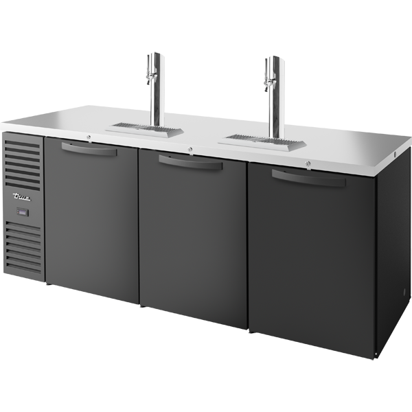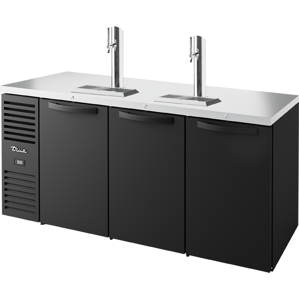 True’s direct draw beer dispensers are designed with enduring quality and value. Our commitment to using the highest quality materials and oversized refrigeration assures colder product temperatures and years of trouble free service. High capacity, factory balanced refrigeration system that maintains cabinet temperatures of 33°F to 38°F (.5°C to 3.3°C). Exterior – Black, powder coated cold-rolled steel with stainless steel countertop. Interior – Stainless steel floor with 1/2" (13 mm) reinforced lip and heavy gauge galvanized steel walls. NSF/ANSI Standard 7 compliant for packaged or bottled product. Two (2) 3" (77 mm) diameter stainless steel insulated beer columns. Cold air is directed into beer columns to reduce foaming and maximize draft beer profits.
