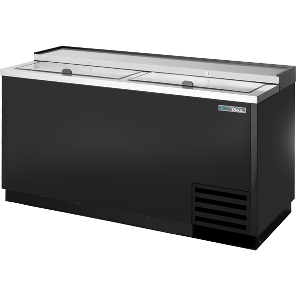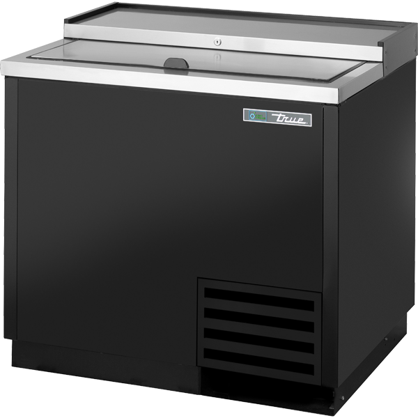 True’s horizontal bottle coolers are designed with enduring quality and value. Our commitment to using the highest quality materials and oversized refrigeration assures colder product temperatures and years of trouble free service. Factory engineered, self-contained, capillary tube system using environmentally friendly R290 hydro carbon refrigerant that has zero (0) ozone depletion potential (ODP), & three (3) global warming potential (GWP). High capacity, factory balanced refrigeration system that maintains cabinet temperatures of 33°F to 38°F (.5°C to 3.3°C) for the best in food preservation. Forced-air cooling. Positively guided airflow cools bottles on top first. Evaporator coil virtually runs length of cooler for balanced temperatures throughout the cabinet. Exterior – stainless steel countertop and lids, black powder coated cold rolled steel front, sides, and back. Interior – long lasting, heavy duty galvanized steel. NSF/ANSI Standard 7 approved for packaged and bottled product. Evaporator is epoxy coated to eliminate the potential of corrosion. Heavy duty, 10 mil thick pure grade PVC coated adjustable bin dividers. Entire cabinet structure is foamed-in-place using a high density, polyurethane insulation that has zero ozone depletion potential (ODP) and zero global warming potential (GWP).