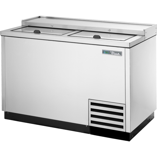 True’s horizontal bottle coolers are designed with enduring quality and value. Our commitment to using the highest quality materials and oversized refrigeration assures colder product temperatures and years of trouble free service. Factory engineered, self-contained, capillary tube system using environmentally friendly R290 hydro carbon refrigerant that has zero (0) ozone depletion potential (ODP), & three (3) global warming potential (GWP). Forced-air cooling. Positively guided airflow cools bottles on top first. Evaporator coil virtually runs length of cooler for balanced temperatures throughout the cabinet. Exterior – stainless steel countertop, lids, cabinet front and sides, and back. Interior – long lasting, heavy duty galvanized steel. NSF/ANSI Standard 7 approved for packaged and bottled product. Evaporator is epoxy coated to eliminate the potential of corrosion. Entire cabinet structure is foamed-in-place using a high density, polyurethane insulation that has zero ozone depletion potential (ODP) and zero global warming potential (GWP). Heavy duty, 10 mil thick pure grade PVC coated adjustable bin dividers.